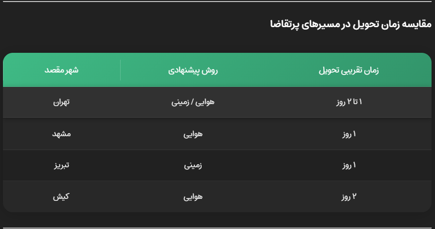 - زمان تحویل: ۱ تا ۳ روز کاری